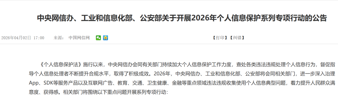 解读|三部委启动2026个人信息保护专项行动:卫健领域为整治重点,六大红线直击医疗数据安全顽疾