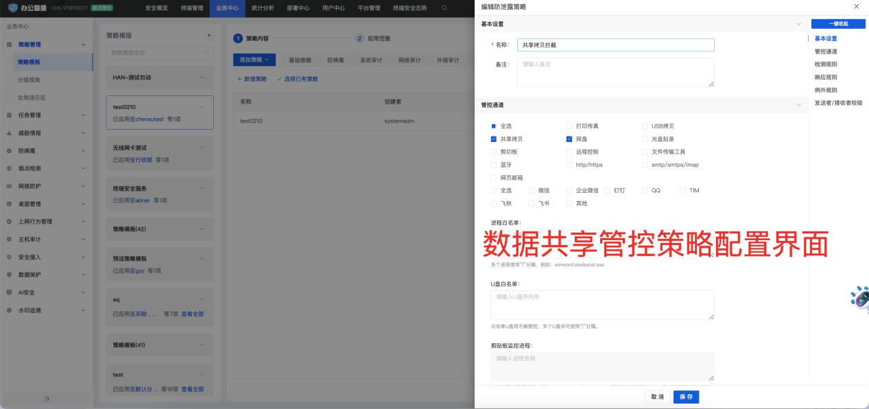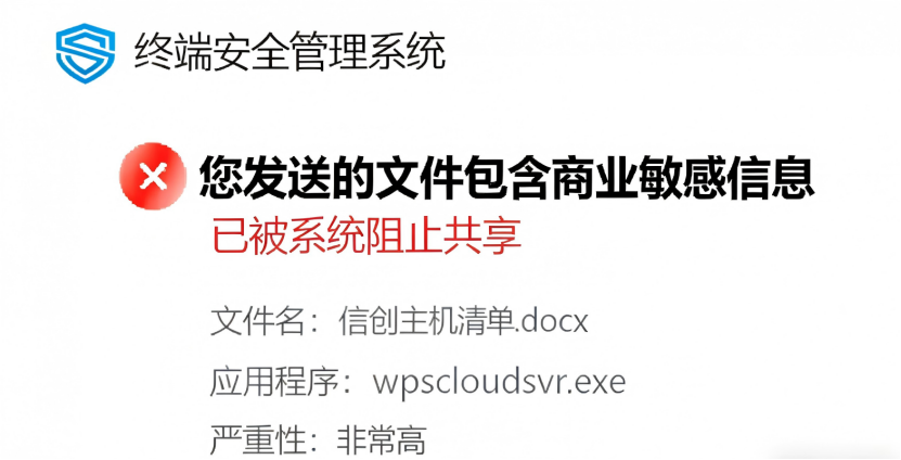 潜在风险:外部共享时,未设置访问时效和操作限制,文件可能被二次转发、篡改;缺乏敏感数据识别能力,涉密文件、核心数据易被误放入共享文件夹,无法及时发现和拦截,进而造成数据泄露。