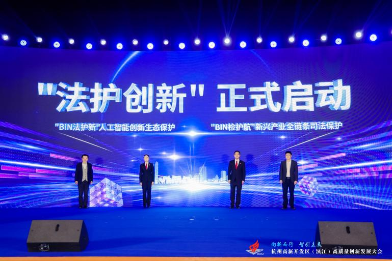 滨江区委副书记、管委会主任、区长李洁主持。滨江区人大常委会主任应敏扬、区政协主席张玮,区委副书记、副区长周挺等区四套班子有关领导、管委会副主任、法检两长出席。安恒信息董事长、杭州高新区(滨江)工商业联合会主席范渊上台参与“法护创新”启动仪式。安恒信息党委书记、总经理张小孟代表公司领奖。